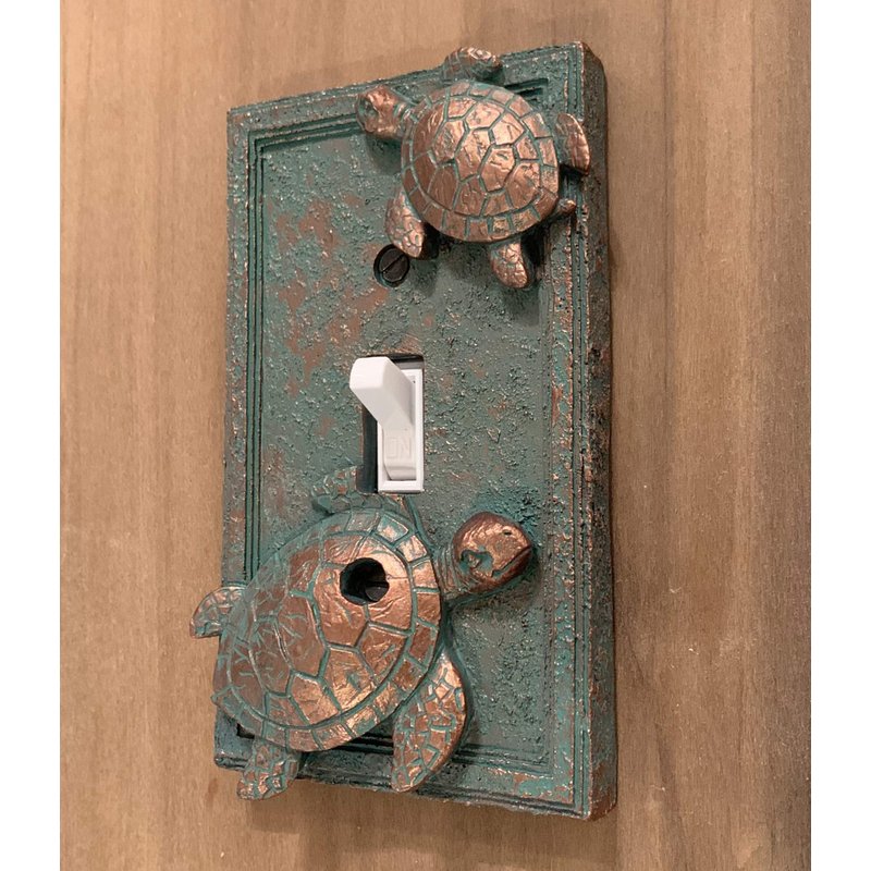Add a little sea turtle decor to your favorite room with these easy to install Sea Turtle electrical covers from Top Brass Home Decor. Made from hard, durable poly-resin material with a beautiful bronze / verdigris finish. Mounting screws included!