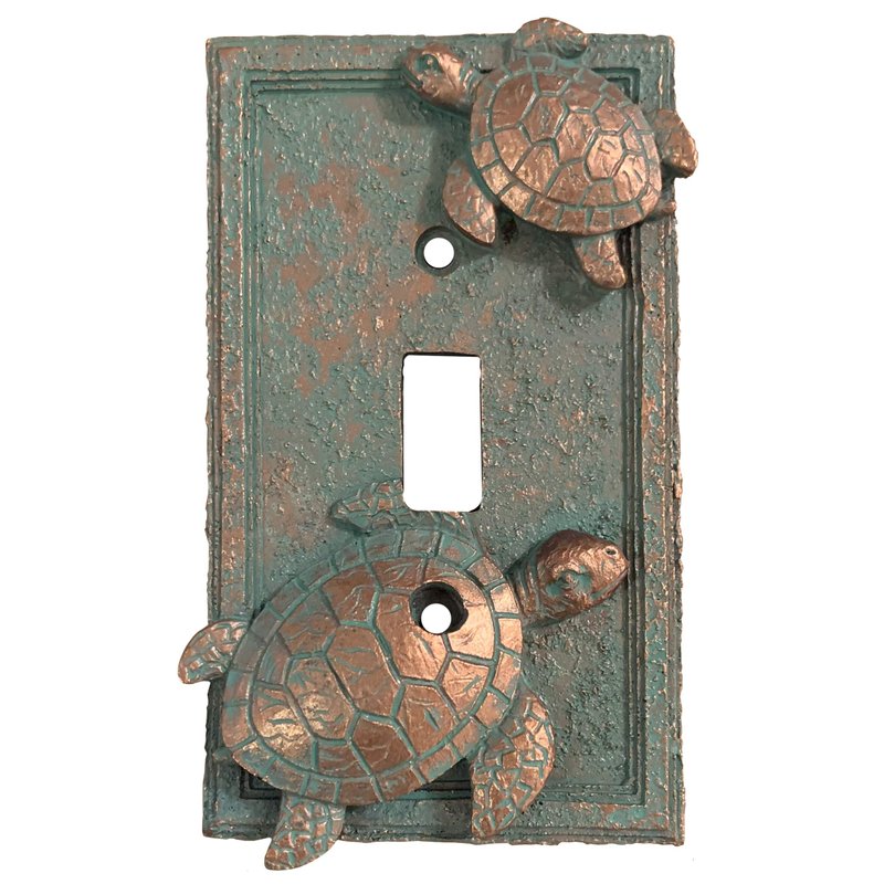 Top Brass Sea Turtle Nautical Beach Art Decor - Electrical Cover Wall Plate Bronze/Verdigris Finish - Single Switch, Double, Rocker, Outlet (Single Switch)