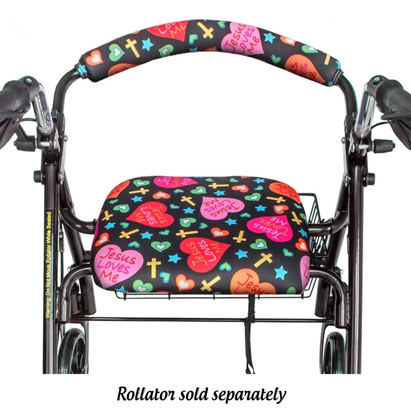 Top Glides "Jesus Loves Me" Universal Rollator Walker Seat and Backrest Covers (Christian)