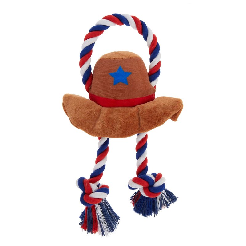 - This strong and sturdy rope toy celebrates the red, white and blue, and features a hat with an internal squeaker that emits playful squeaking sounds when squeezed.