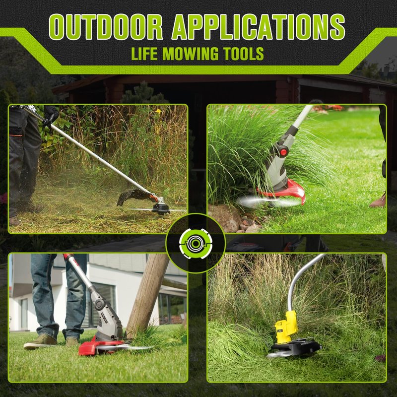 - You will get: 16 pack replacement trimmer spools + 3 replacement caps and 3 replacement spool springs. Good value for money,easy for replacement. Note: 1) Wear eye protection and long pants when using this product to avoid injury; 2)Only Suitable for tender weed grass. Tough and strong weeds please use blades to trim.