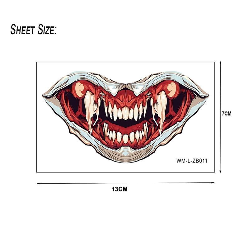 TopFunny Halloween Temporary Tattoos, 10 Sheets Clown Horror Mouth Tattoo Stickers Zombie Vampire Tattoo Face Decals Gifts Prank Props for Halloween Cosplay Party Decorations Props Big Mouth
