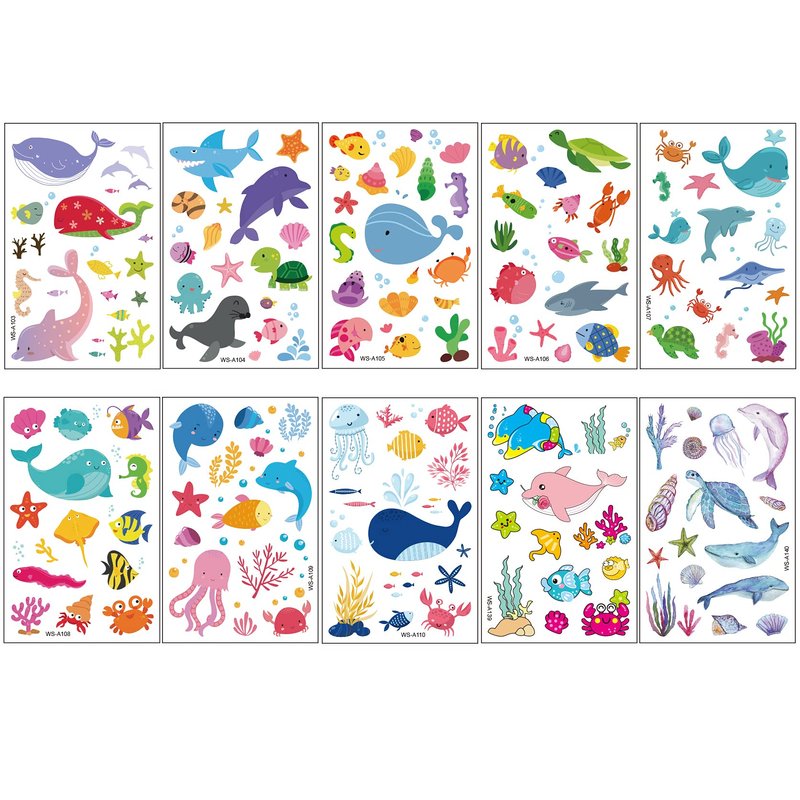 - Quantity: Contain 160 pcs Tattoos, Pack of 10 Sheets Temporary Tattoos; Size:12*7.6CM; With these Cute Stylish Ocean Animals Theme Temporary Tattoos, Both Children and Adults can Get Great Fun