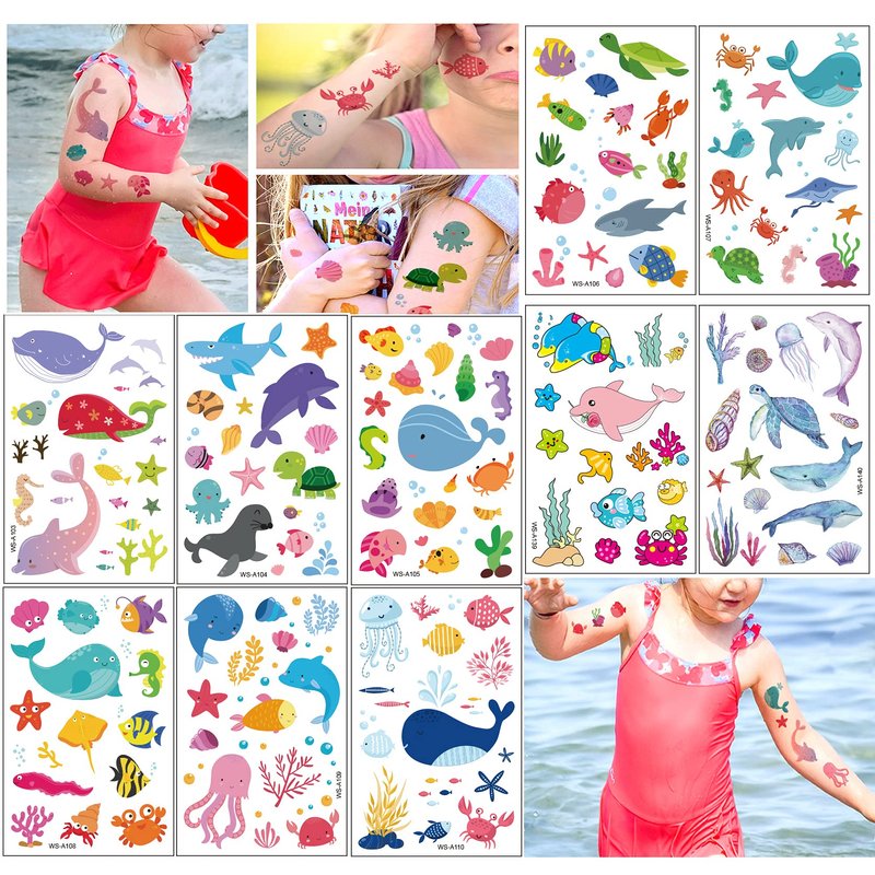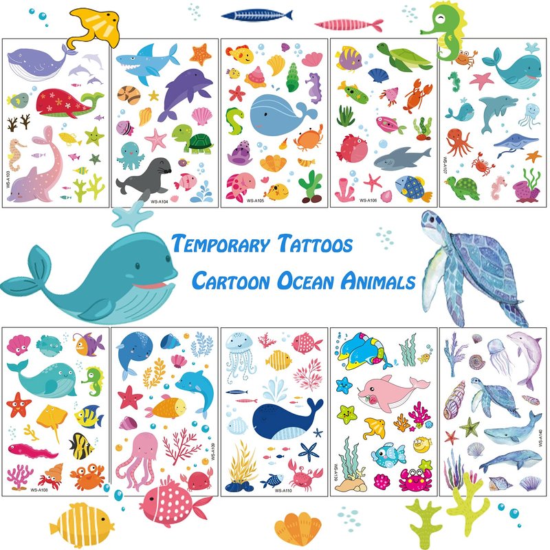 - Safety and Friendly Choice: Non-allergenic, Non-toxic and Totally Safe for Your Kid's Skin. Kids Fake Decoration Tattoos Ocean Animals Design Temporary Tattoos Provide more Children's Boys Favorite Theme Characters