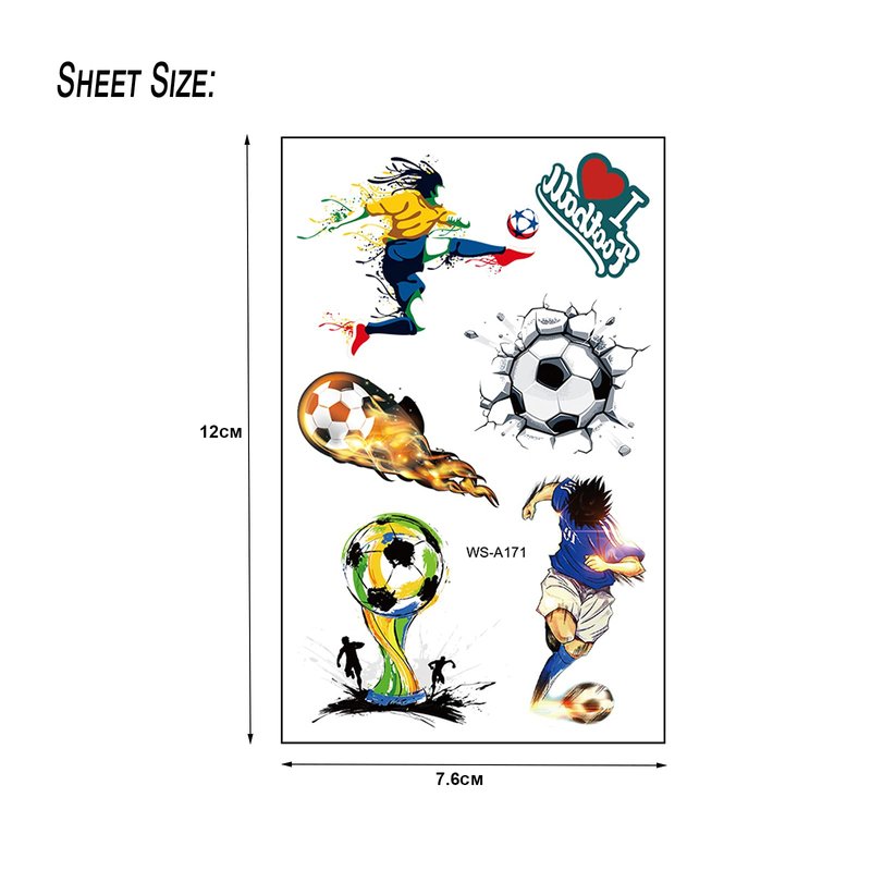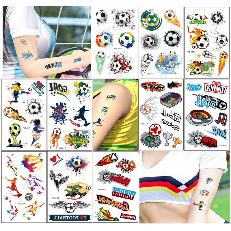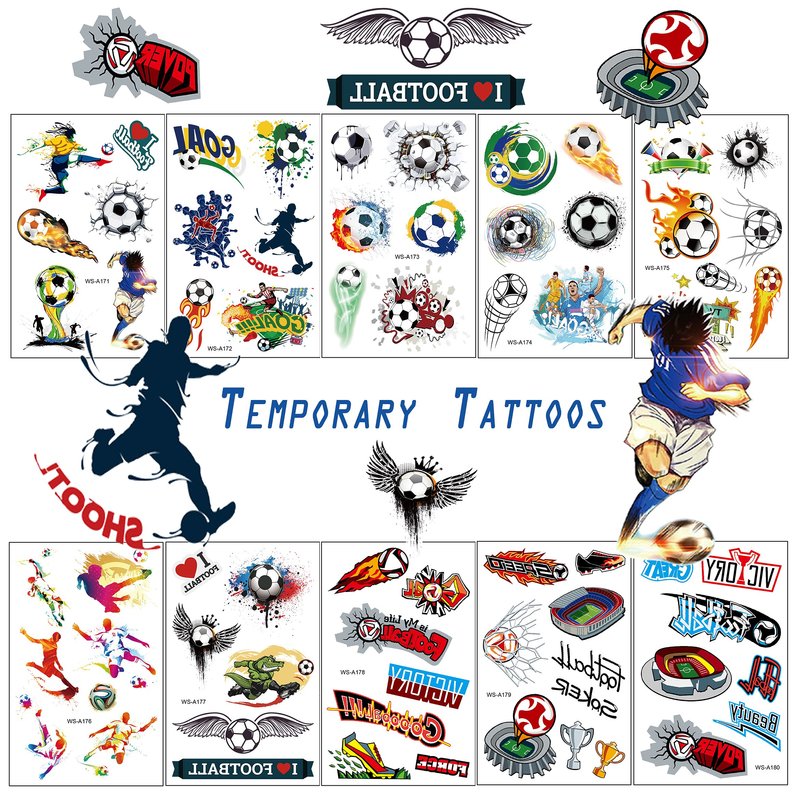 - Quantity: Contain 87 pcs Tattoos, Pack of 10 Sheets Temporary Tattoos; Size:12*7.6CM; With these Cute Stylish Soccer Theme Temporary Tattoos, Both Children and Adults can Get Great Fun