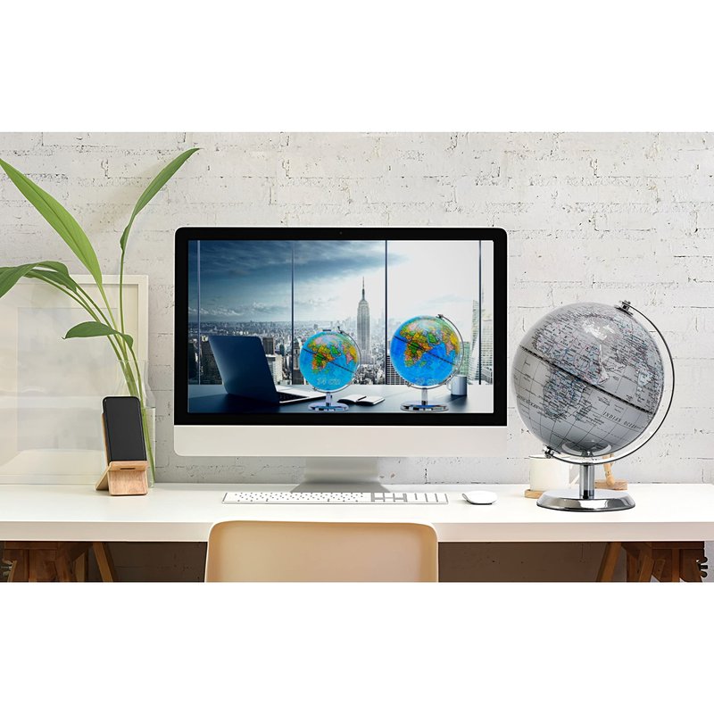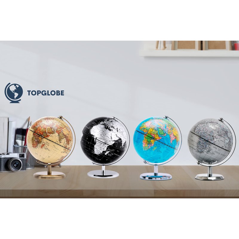 MORE THAN DECORATION: Topglobe World Globe (Diameter 5.5") has high quality printing which is fine and clear, led to a very easy and enjoyable experience when one to read the geographical sphere. It displays countries, political boundaries, capital cities, major cities, and more, feel free to use it every day and refer to it anytime. FUN & EDUCATIONAL: Our Globe has up to date detail, encourage inquisitive children to explore the world of science with their own hands and eyes. Children may be able to explore the continents they have or have not been, spot a place and find out what’s on it, and what’s around it, they would be encouraged to read and recognise the fact of the earth geographically and historically. EDGY METALLIC: Beautiful eye-catching globe , with a shiniest and rusty-free stainless steel arc and base, perfect for home and office decoration, as a stylish modern look, or simply match the colour of the spot you have chosen. HIGH QUALITY: The product itself rotates on a sturdy stand, height Including stand:7.5" (19 cm). We use the best material we are able to use in the industry, which include stainless steel, high quality ink, and so on. Aim to ensure this globe is a real luxury, with no disappointments. GIFTING: Packaging in premier craft box, perfect gifting idea for almost all the occasions. Children’s birthday, Christmas, friends’ event, new office opening, you are more than welcome to be creative. For instance, give to someone who would love to decorate a studio, or in a café as a stand out piece, etc. Recommended for 8 years + Recommended for eight years above, and children under 8 years require under supervision of an adult.