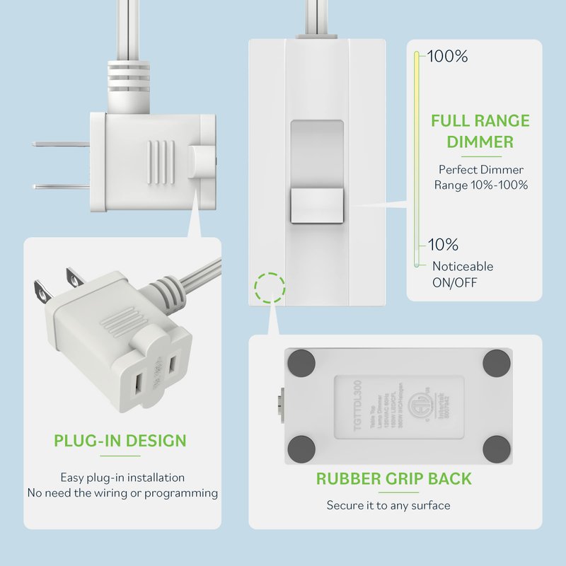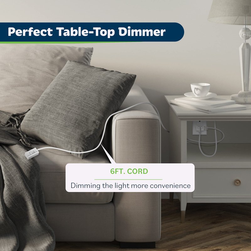 - Plug-in dimmer features full range dimming with a quiet slide control and no humming noise. Dim lights from 10% to 100%