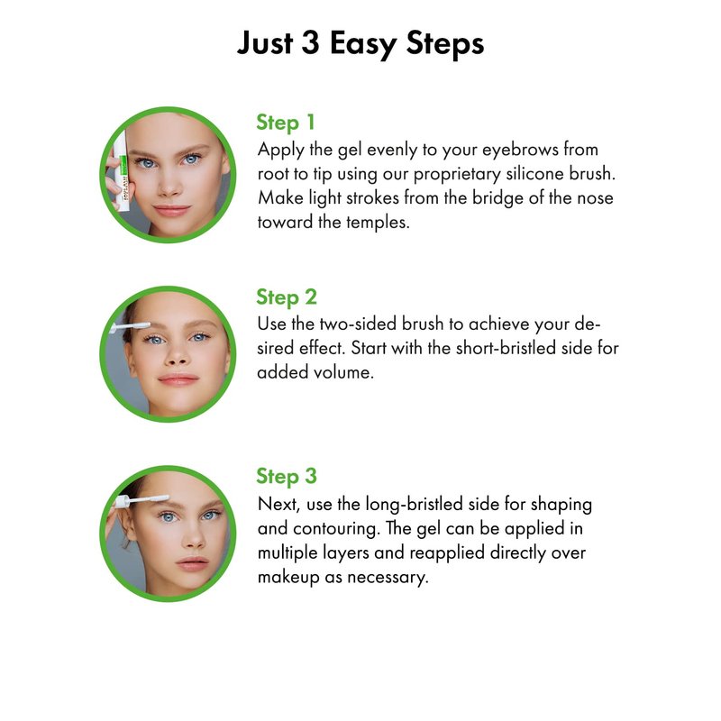 - Dual-Bristle Applicator Brush – Our eyebrow enhancing serum also comes with a soft silicone applicator that makes it easier to apply our gel formula with a defined “showy” look or a more natural “wet” effect that you’ll love.