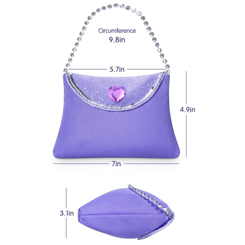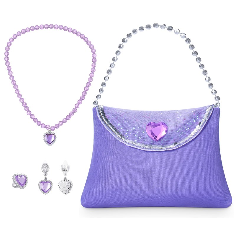 Little Girls Princess Costume Accessories Set - with Princess Dress Up Handbag, Necklaces, Rings, Earrings ( Purple Heat)