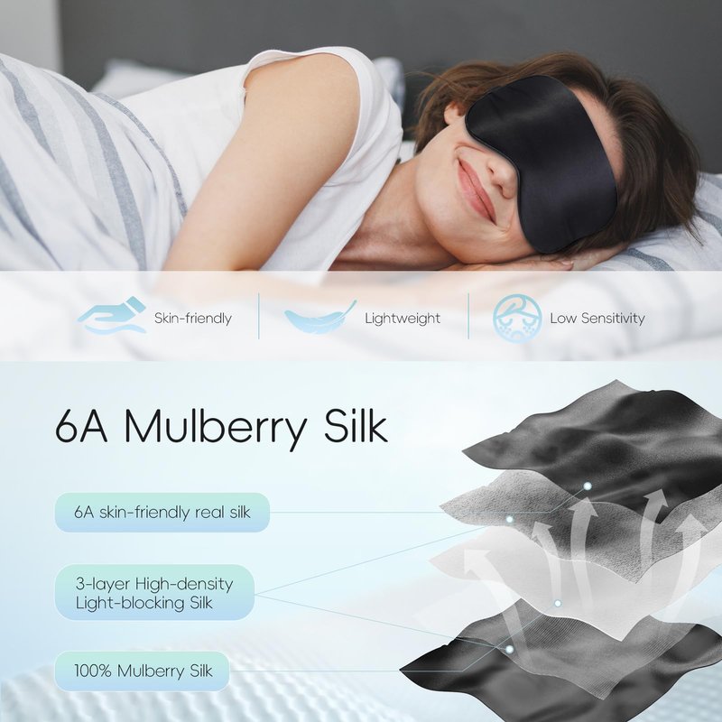 - 𝟔𝐀 𝐒𝐢𝐥𝐤 𝐂𝐨𝐦𝐟𝐨𝐫𝐭: Made from natural mulberry silk, with zero pressure on the bare skin, Silk Sleep Mask is an ideal choice for sensitive skin. With 5 layers of special fabric and 3 layers of light-blocking silk cotton filling, it provides a fluffy and soft texture.