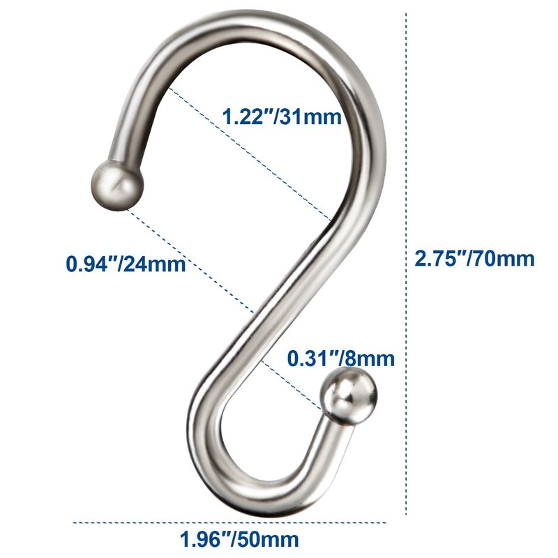 - Unique DESIGN:The shower rings for curtain with S shape reduce friction and tearing and glide easily and smoothly on any diameter. The hook ball is designed to fix the shower hooks on the rod firmly and the metal shower hooks will not fall off easily.