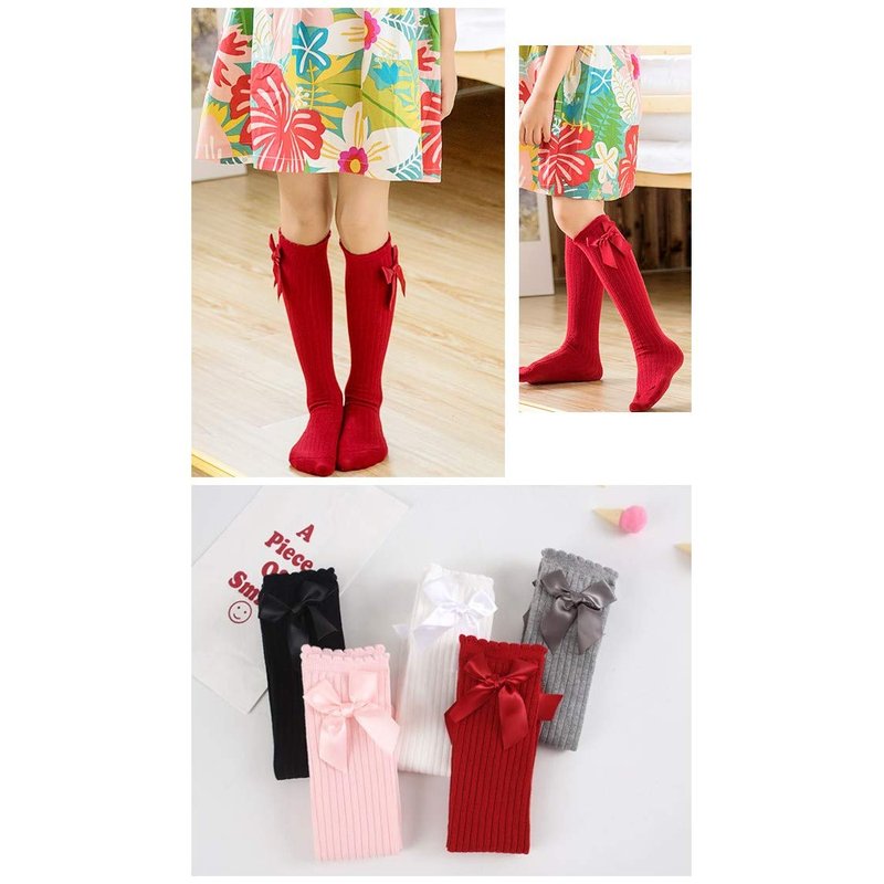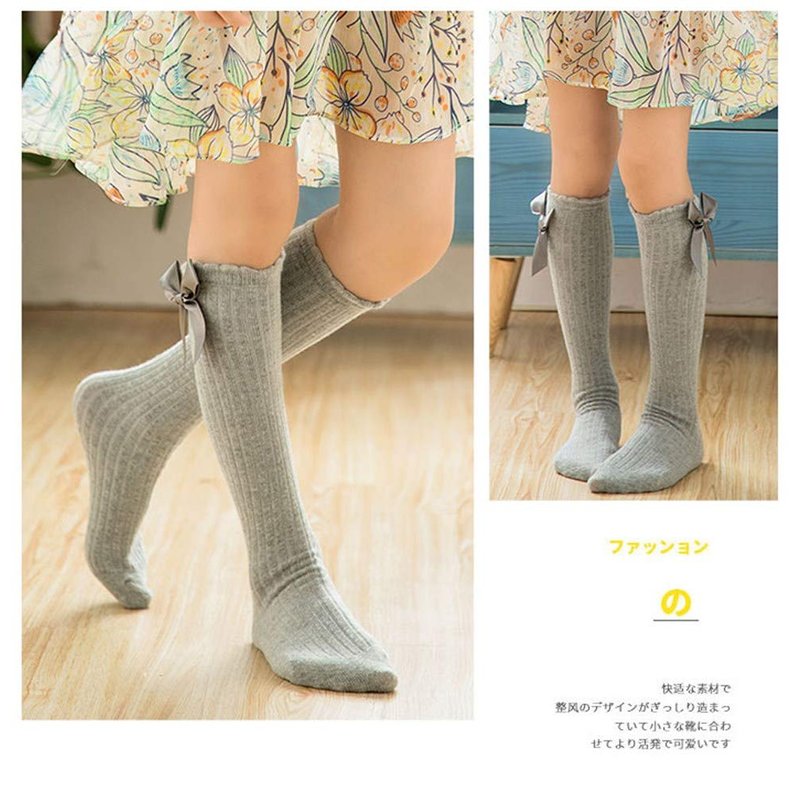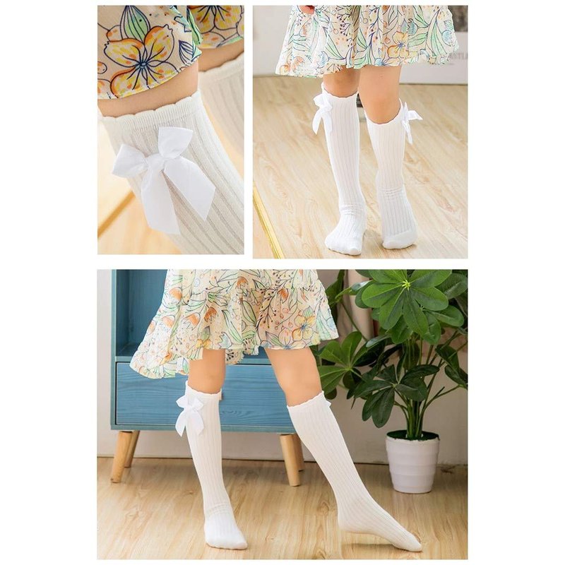 Toptim Little Girl's Knee High Socks Over Calf Kids Overknee Stockings Bow Style 3-12T(Bow2-5Piars)