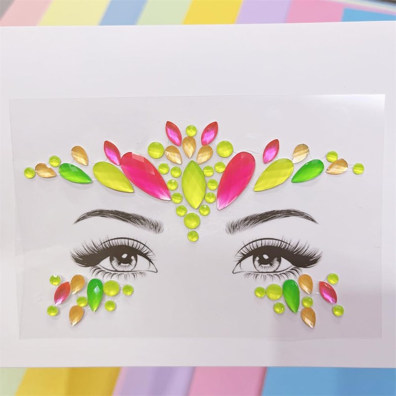 Topz Neon Face Jewels Face Gems Sticker Christmas Makeup Face Tattoos Rainbow Crystal Eye Gems Sticker Body Glitter Fluorescent Rhinestone sticker Body Gems Temporary Tattoo