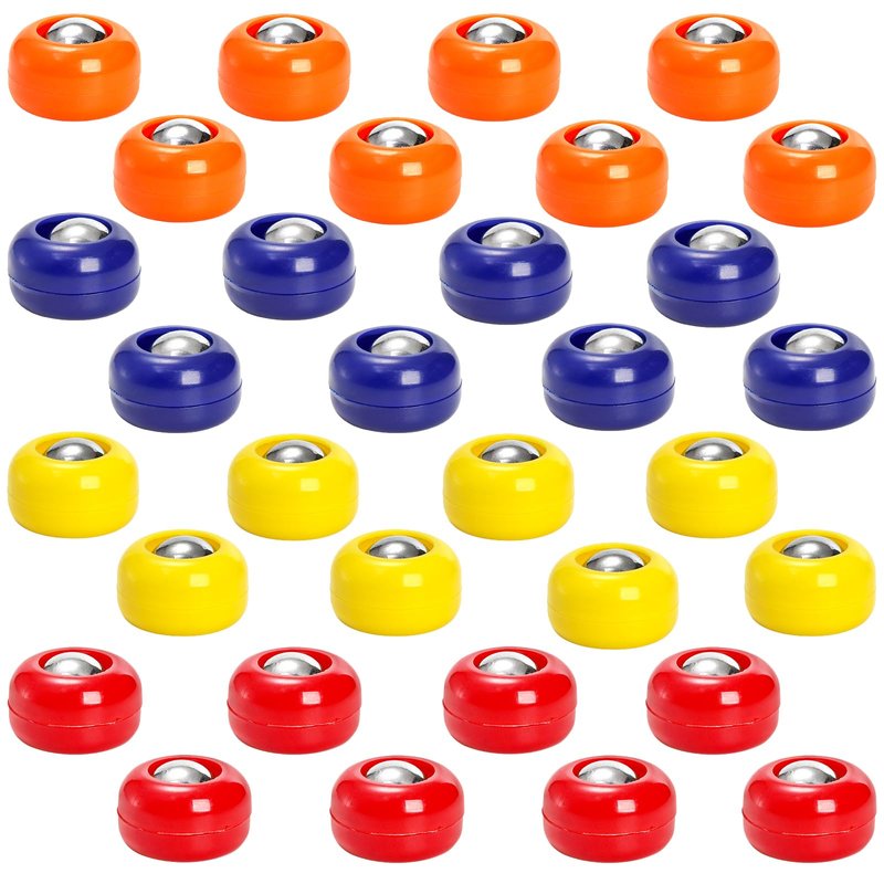 TOPZEA 32 pieces mini shuffleboard replacement pucks in vibrant colors: orange, blue, yellow, red, each color: 8 pieces, easy to recognize players, the quantity is sufficient for you to play with family and friends indoor in spare time and holiday, brings much fun no matter weather. The size of the tabletop shuffleboard pucks is about: 1"(Dia) x 0.55"(H)/ 25 mm (Dia)x14mm(H), weight:0.67oz, great for replacing the original ones and upgrading tabletop curling, fits for all tabletop rebound board, shuffleboard and curling board tables. Tip: please make sure your surface is smooth or waxed to make games more accurate, don't forget to clean the pucks as well. Every shuffle board roller slides smoothly and straight, improves the level of your game, feature flat bottom half with a rounded top, so there is a small but noticeable difference in the speed they rolled, due to the additional resistance of the flat bottom, using the rounded top side will slide slightly faster than the flat bottom, you can choose one side you prefer. The mini tabletop rolling beads are very versatile, great as shuffleboard and curling pucks, also played in many original games, you can use your imaginations to create new games and new rules, this shuffleboard rollers set is also ideal gifts for birthday, wedding, housewarming, Thanksgiving, Christmas, etc. The outer shell of the pucks is made of quality ABS and rolling ball bearing is alloy material, sturdy, not easily break or rust, there are no irregularities on the rolling surface which cause the pucks to occasionally wobble down the board, and make them glides fast and straight, every puck works fine, even after playing "battle" games.