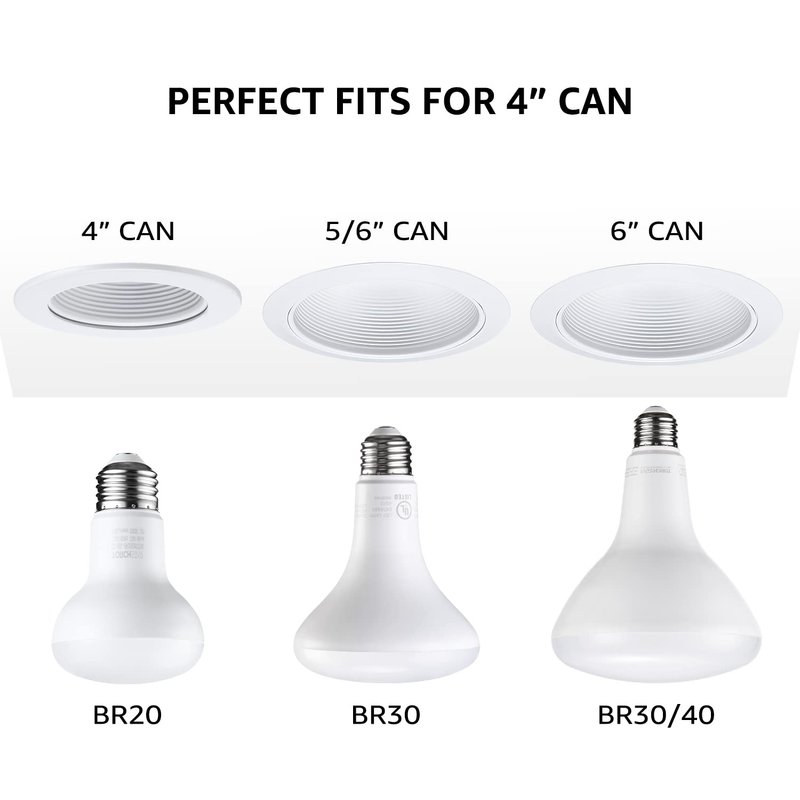 - Applications: The standard E26 base is a match for 4inch recessed can lights, letting this LED BR20 bulb be used in bedrooms, kitchens, living rooms, and offices