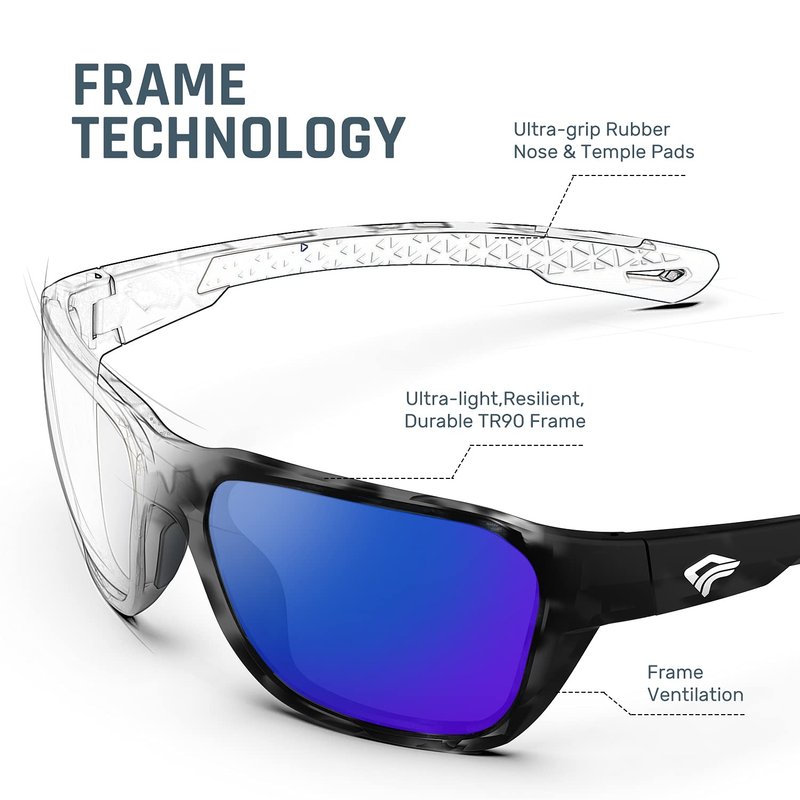 - ERGONOMIC DESIGN>>> Sunglasses` frame made from TR90, abosolutely lightweight and extremely flexible with reinforced hinges that also allow it to fit from medium to large heads, make more comfortable and all-day wearability. Heat-resistance and shockproof material features let it support your work for a long time.