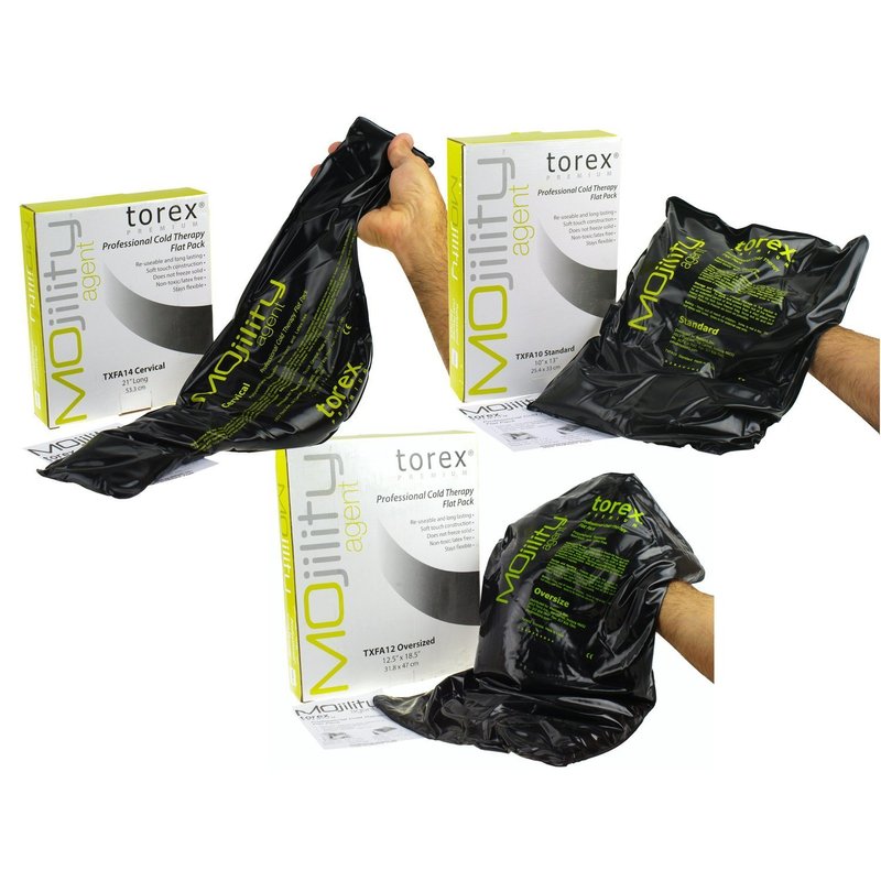 Torex Flat Style Cold Packs offer the same premium medical grade materials that stay ultra soft when chilled allowing torex to comfortable mold to the body in a convenient flat style. This is great for the hard to treat very sensitive post surgery groin, breast, face, shoulders, neck and head areas. Our flat packs are an excellent alternative to the ice bags that are commonly given after surgery. Together, these features reduce treatment time, provide faster pain relief, keep swelling to a minimum, and greatly increase overall effectiveness.
