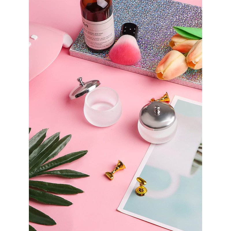 - 💅 Matte Nail Art Glass Cups with Lid Set - The package include 2 pieces matte nail art liquid powder dappen dish with stainless steel lid for acrylic liquid powder styling tool, they are designed with matte look.