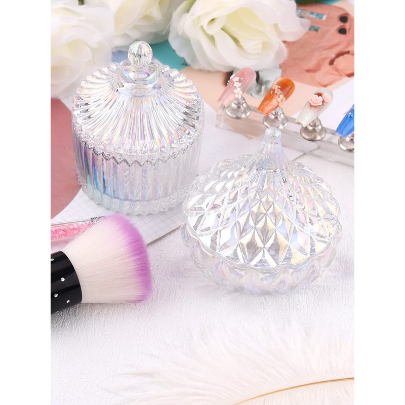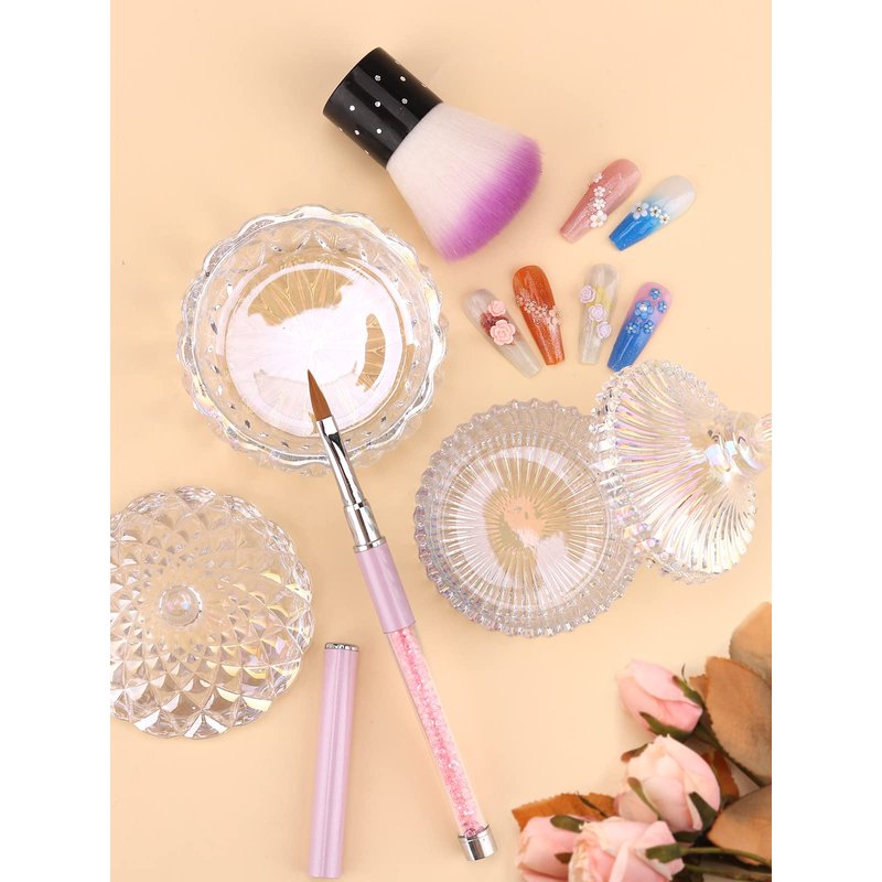 - 【Package Contents】A set of 2 dappen dish for acrylic nails measuring approximately 3.7" x 3.7" x 3.3" and 3" x 3"x 3". Made of high-quality crystal glass,unique retro flow design with colorful luster engraved on its outside, smooth lines, exquisite workmanship, 360° refraction of dazzling light, safe and harmless, and the decorative effect will make your eyes shine