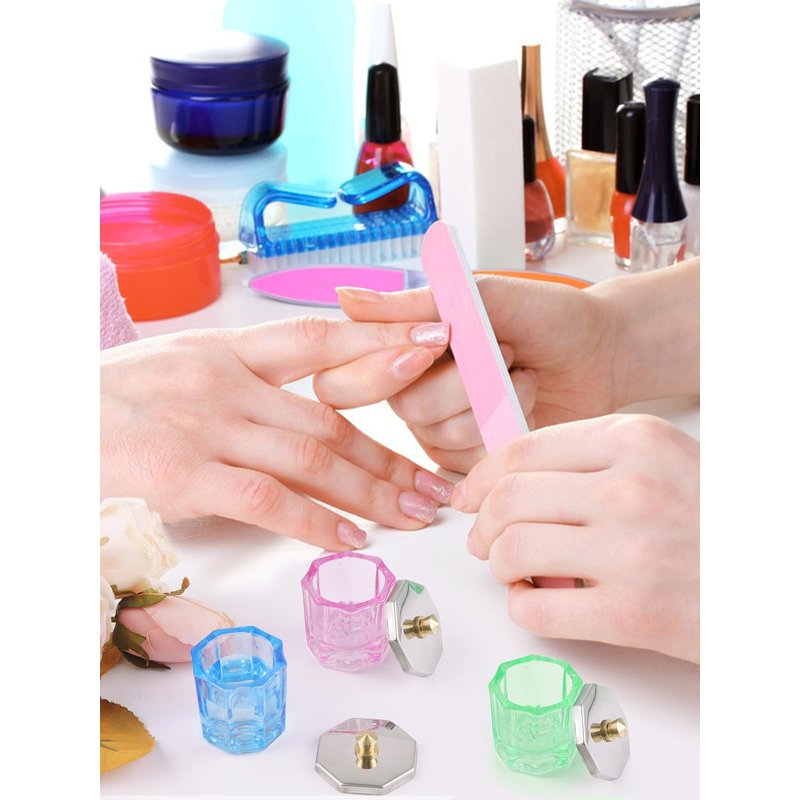 - 【Perfect Design】Dappen dish for acrylic nails is designed with a small size of H 1.3in* W 1.22in, perfect for dipping your brush without exposing the handle to acetone inside and save on your product usage. Comes with the lid, ensuring that your liquid, powder or nail decoration inside remains protected from volatilizing, dirt or oxidation.