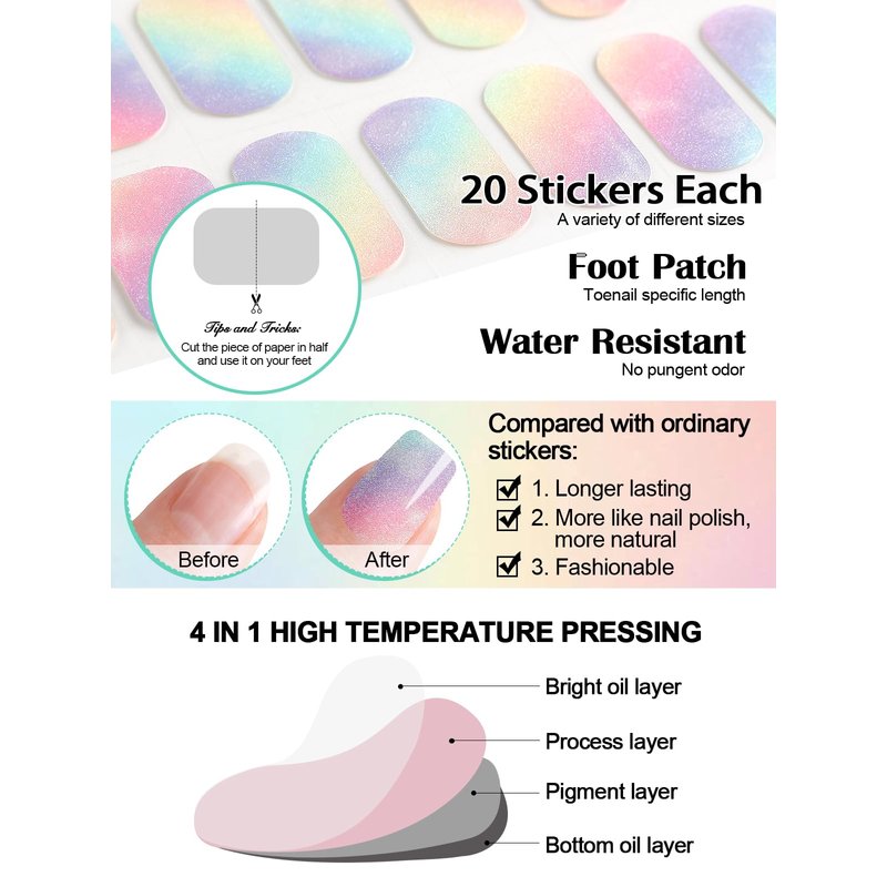 -The self-adhesive nail strips are easy to apply and remove, you can DIY your nails anytime and anywhere, easy to use, even beginners can get beautiful nails in minutes!