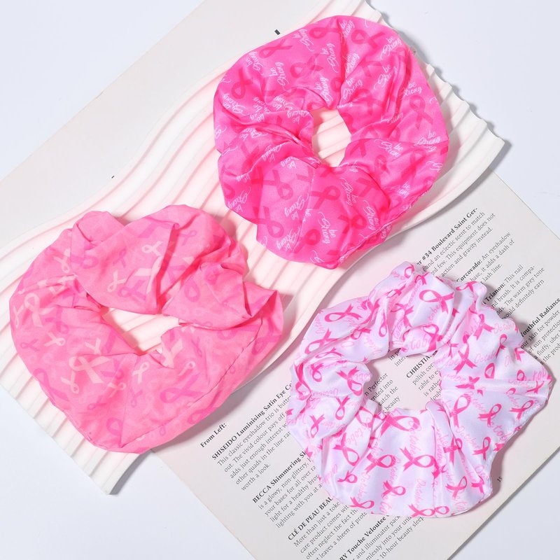 Package: 3pcs Breast Cancer Pink Ribbon Hair Ties Scrunchies