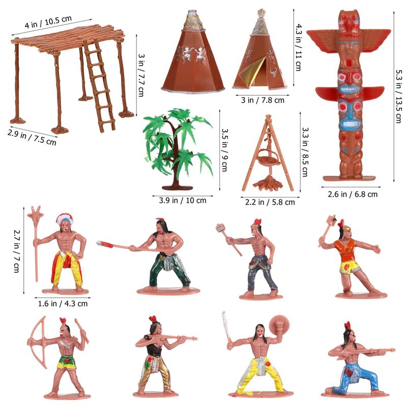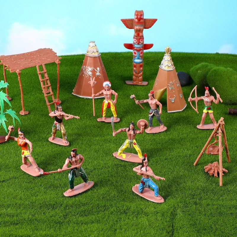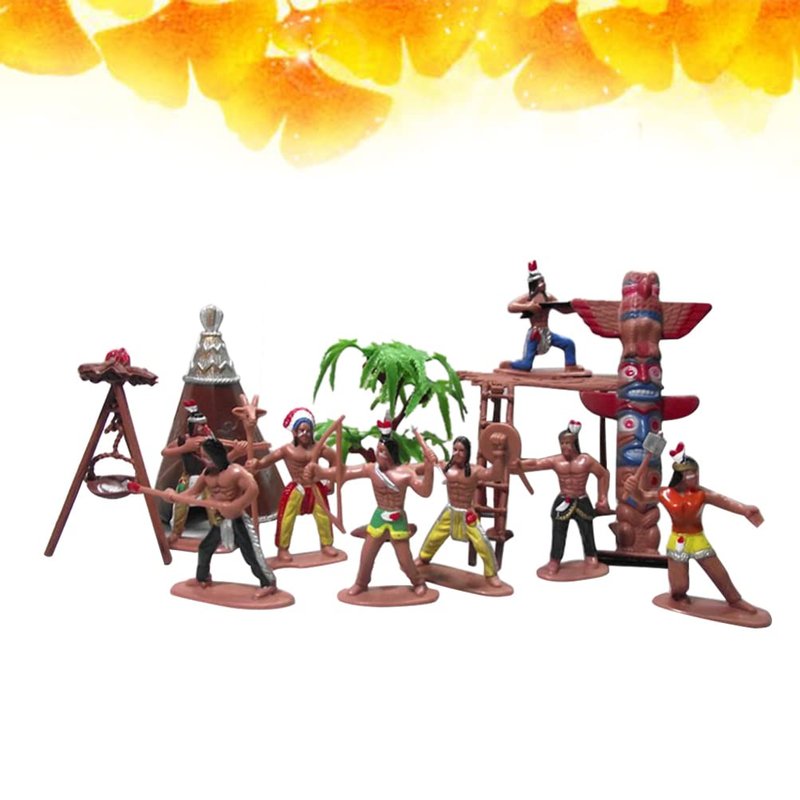 - Indians Action Figure Model Playset: 13pcs Figures Decoration Wild West Adornments