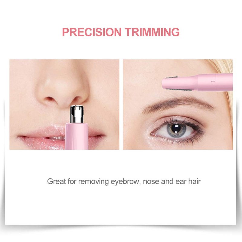 TOUCHBeauty Ear Nose Hair Trimmer and Eyebrow Trimmer for Women 2in1 Facial Hair Removal set with Dual Trimmer Head Battery Operated Battery Included Pink Color TB-1458
