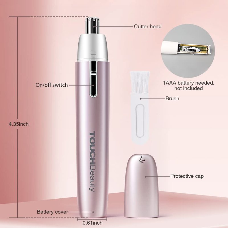 TOUCHBeauty Nose Hair Trimmer for Women: Facial Hair Remover Battery Powered - Hair Trimmer for Nose, Ear, Neckline, Eyebrow