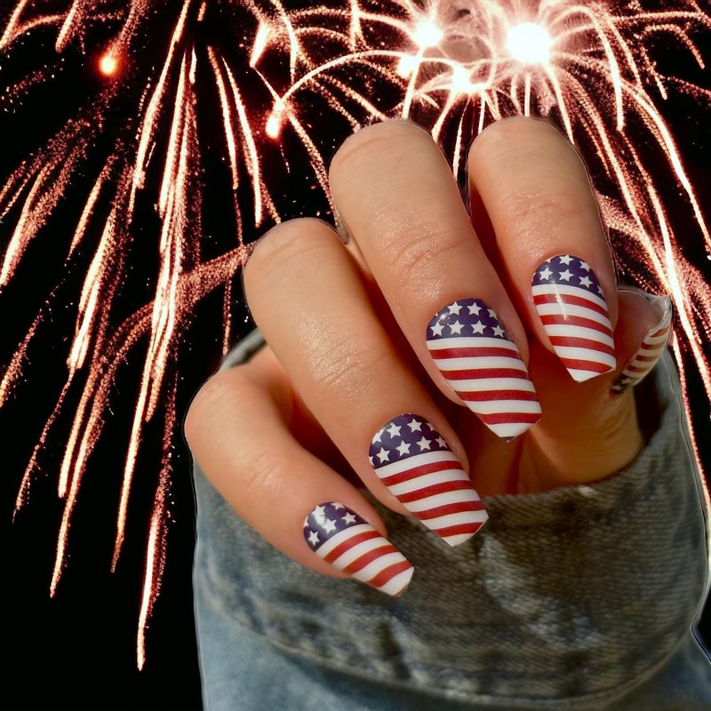 TOUGH GIRLS | Nail Polish Strips | 20 Stylish Strips | Brighter, Thicker, Tougher | Includes Cuticle Stick, Nail File, & Nail Wipes (Stars & Stripes)
