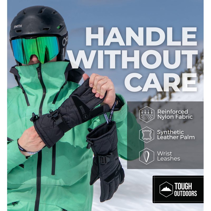 Tough Outdoors Ski Gloves - Waterproof Snow Gloves for Women and Men - Winter Snowboard Gloves - Skiing & Snowboarding Gloves for Cold Weather - with Wrist Leashes, Nylon Shell, Thermal Insulation