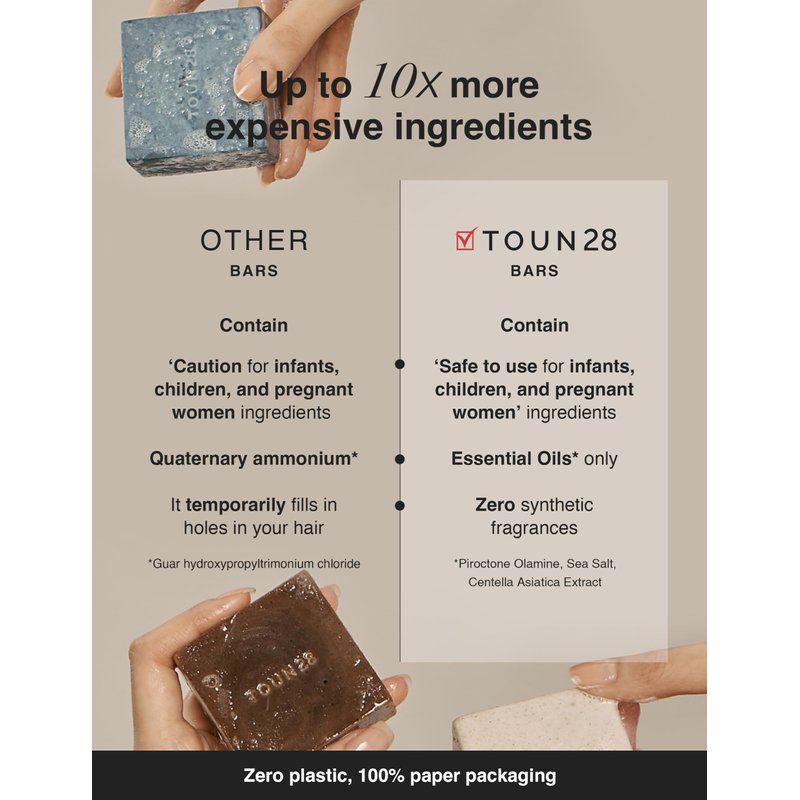 Experience the soothing power of TOUN28's Sea Salt & Menthol Solid Shampoo Bar. This 3.5 oz. bar is specially formulated to provide relief from dandruff and itchy scalp, offering a natural cooling and calming effect. Crafted with vegan and chemical-free ingredients like piroctone olamine, sea salt, and centella asiatica, this shampoo bar gently cleanses while treating sensitive scalps. Its solid form eliminates plastic waste, making it an eco-conscious choice. Indulge in a refreshing shampoo bar that promotes hair growth and a healthy scalp, ensuring your tresses feel revitalized and healthy. TOUN28's scalp treatment is designed to leave your hair feeling refreshed and invigorated, providing a truly soothing experience with every wash. This anti-dandruff shampoo bar is perfect for those seeking a natural, effective solution for scalp care. The TOUN28 Sea Salt & Menthol Anti-dandruff Cooling Refreshing Shampoo Bar with Centella Asiatica is ideal for oily scalp and damaged hair. It is formulated to balance your scalp’s pH with sub-acidic properties, ensuring your scalp stays healthy and your hair remains strong. Free from parabens, sulfates, and silicones, this Korean haircare solution offers a gentle yet effective cleansing experience. Perfect for eco-conscious consumers, this shampoo bar is vegan and crafted without harmful chemicals, making it safe for both your hair and the planet. The cooling menthol provides a refreshing sensation, while the sea salt and centella asiatica work together to soothe and repair your scalp. Embrace a healthier hair care routine with TOUN28's innovative shampoo bar, designed to nourish and protect your hair while minimizing environmental impact. Choose TOUN28's Sea Salt & Menthol Solid Shampoo Bar for a refreshing, eco-friendly hair care routine that prioritizes both your hair's health and the environment. Experience the benefits of a shampoo bar that not only cares for your scalp but also promotes sustainable beauty practices. Make the switch to a more natural, effective solution for dandruff and scalp care with TOUN28.