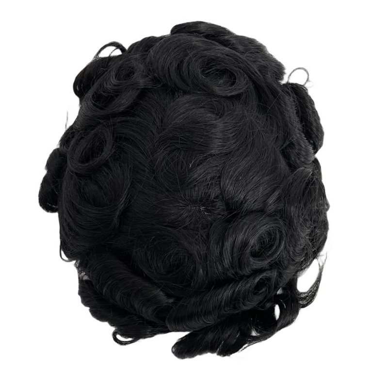 Toupee for Men Human Hair Wigs Mens Toupee European Virgin Human Hair Units Curly Wave Mens Wig Toupee Hair Real Human Replacement System for Man FPM Prosthesis Units Patch #1B Off Black (6x8")