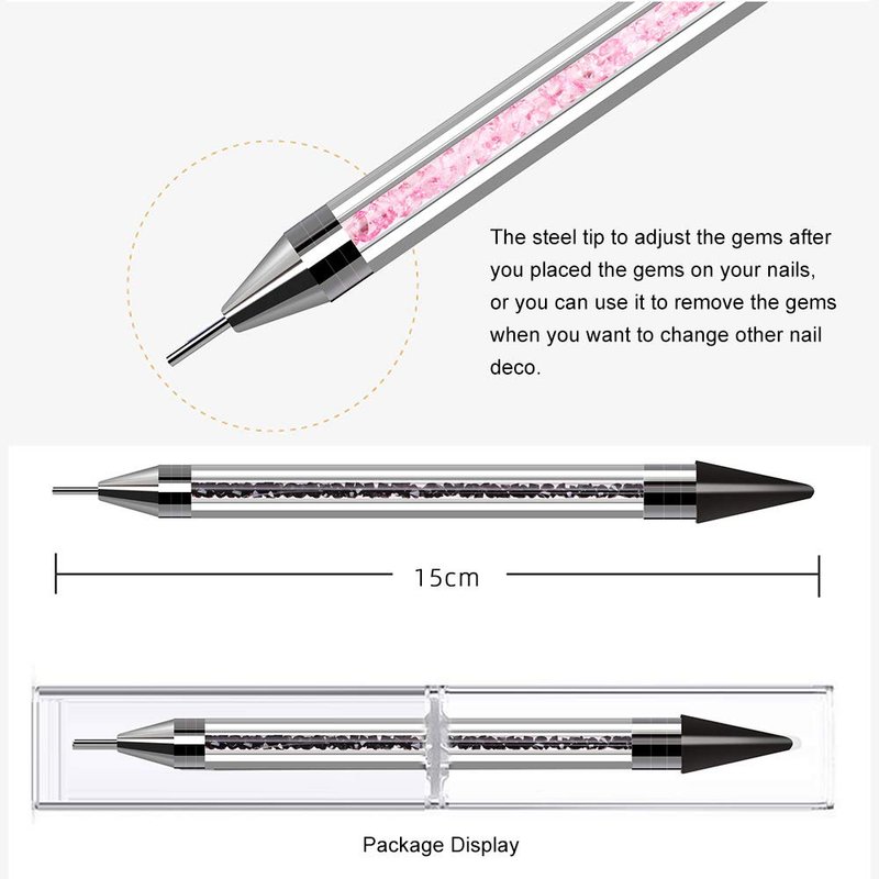 - Double head rhinestone picker : can be used as rhinestone picker and magnetic stick, meet different needs during your crafts. The wax tip is for picking gems, then you can use the steel tip to adjust the gems after you placed the gems on your ils, or you can use it to remove the gems when you want to change other il deco.