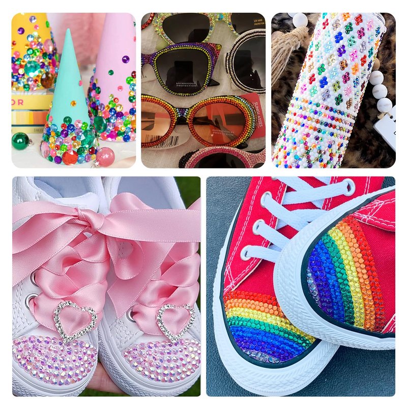 - 🌺 Quick Bedazzler Kit: The resin rhinestone and b7000 glue kit is easy to use, you can use glue to stick rhinestones to any surface, it drys clear with strong adhesive, drying time is 6-10 minutes, giving you enough time for minor adjustments after the glue is applied, dry totally after 24 hours. Our glue is waterproof, it adheres to a variety of materials with great adhesive, locks gems in place with amazing hold, works on metal, plastic, glass, ceramics, wood, fabric, leather, etc.