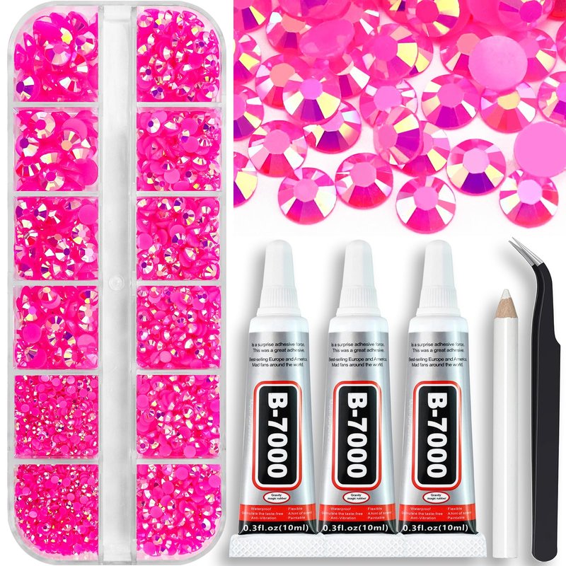 Towenm B7000 Clear Glue with 4000PCS Hot Pink AB Rhinestones for Crafts Clothing Fabric Shoes, Glue Fix Flatback Gems for Nails Face Jewelry, Mixed 5 Sizes 2mm 3mm 4mm 5mm 6mm Diamond Bejeweled Kit