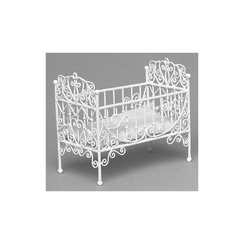 Town Square Miniatures Dollhouse Baby Crib, White Wire