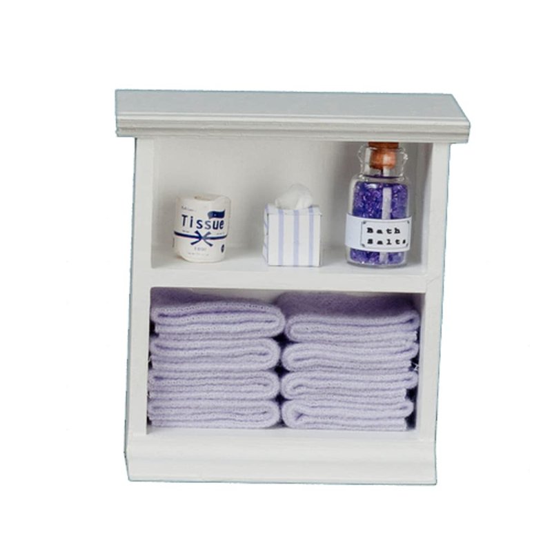 Town Square Miniatures Dolls House Miniature Furniture Small Shelf Unit & Lilac Bathroom Accessories