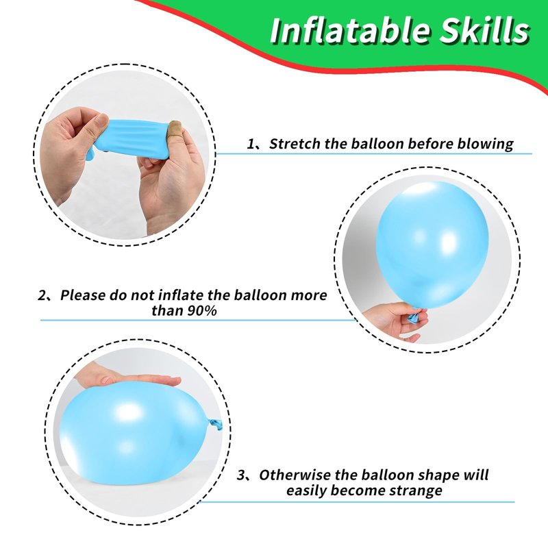 - Material of balloons: All balloons are made of natural latex, each balloon has undergone strict manual testing, the balloons are very elastic safe. These balloons can be used by both adults and children. They can be filled with air or helium and are recommended for use with balloon pumps.