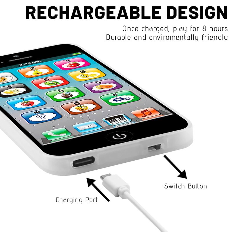 - SIMULATION DESIGN: The fake toy phone looks like a small Phone, has USB for charging like a real phone. Let baby have their own phone and no longer taking yours