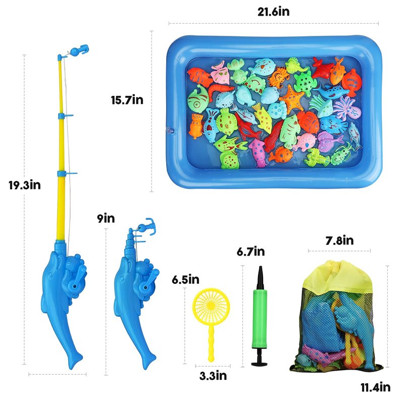 This magnetic fishing toy is super convenient inflatable pool which allows you to set this magnetic toy up at a park, as a beach toy, as a toddler pool toy, an outdoor yard toy, or even in your home. When you aren't using it, you can fold up the kiddy pool and easily store the entire set in the included waterproof bag. .