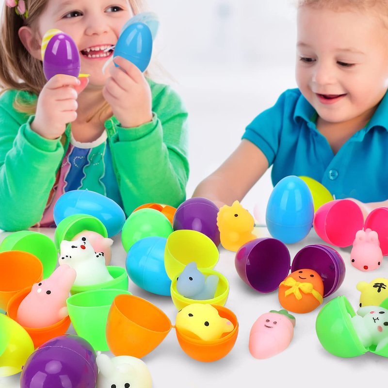 - PLASTIC EGGS - You receive 32 filled easter eggs with animal squishy toys inside. The prefilled easter eggs come in 6 different colors perfect for boys and girls easter egg hunts. Plenty of eggs to decorate with or hide around the yard.