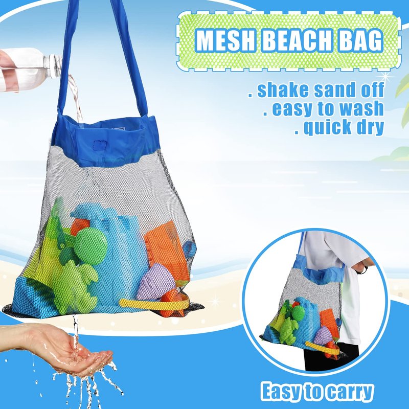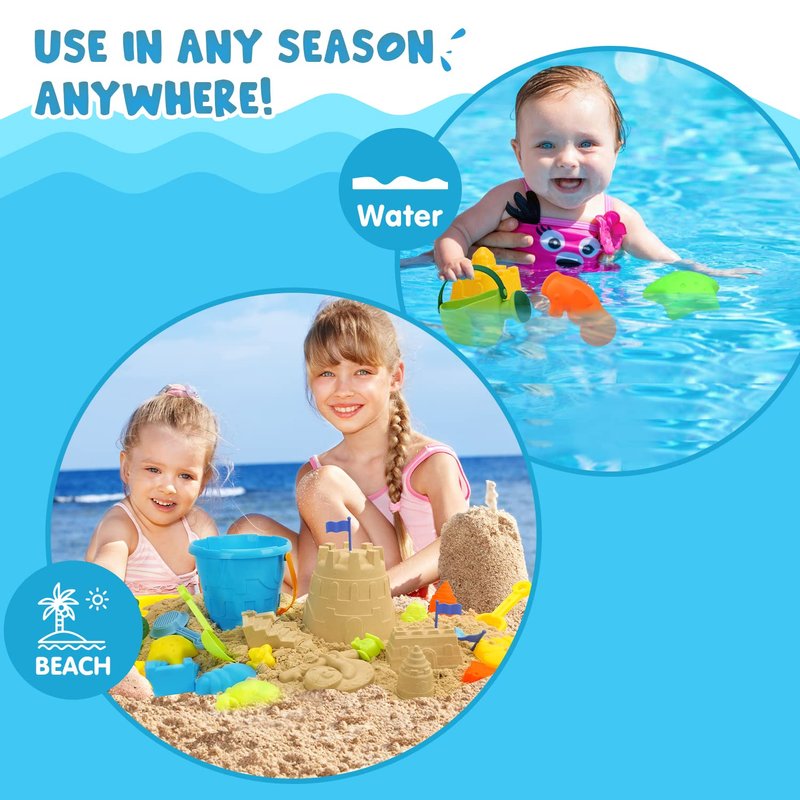 - 😀 EASY TO CARRY: This sand beach toy comes in a durable and waterproof mesh bag to store all the pieces and easily carry your beach bucket and toys anywhere you go. Also, this beach sand toys set includes everything you need for hours of fun outdoor/indoor beach sand play.