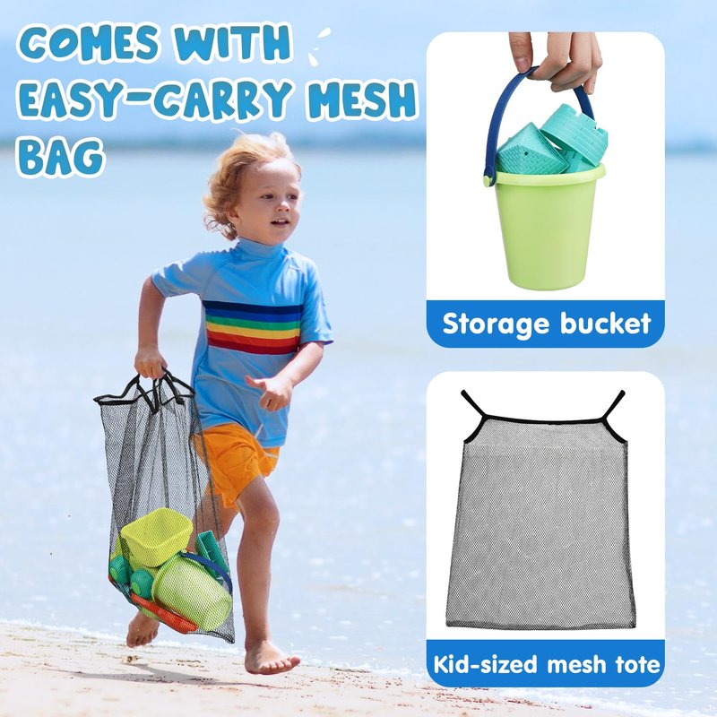 - NOT JUST FOR THE BEACH: Even if it’s not vacation time, you can still use these sand buckets and shovels for kids all year long. Use them as sandbox toys at the park, or use them indoors as sand toys. The possibilities are endless!