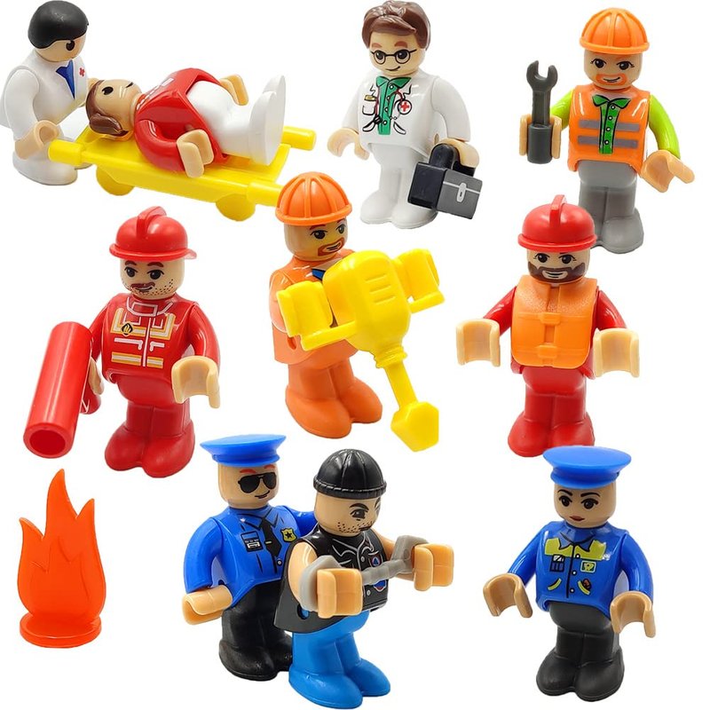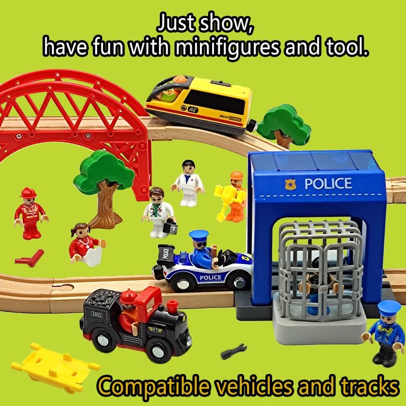 • Include - this listing include 10 pieces different figures(1 Policeman , 2 Policewoman , 1 Gang , 1 Doctor , 1 Nurse , 2 Workers , 2 Firemen , 1 Office Clerk ) + 1 set hand tool ,not include any trains cars track.