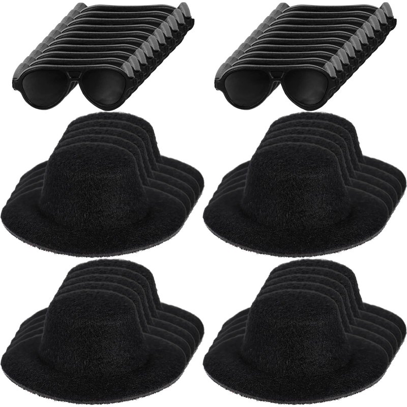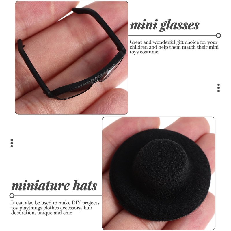 TOYANDONA Doll Glasses Mini Formal Hat Set 20pcs Miniature Doll Hats 20pcs Black Doll Sunglasses Dolls Costume Accessories for Diy Crafts Dollhouse Decor