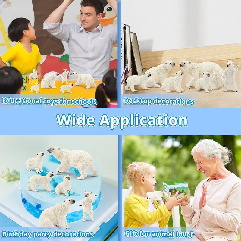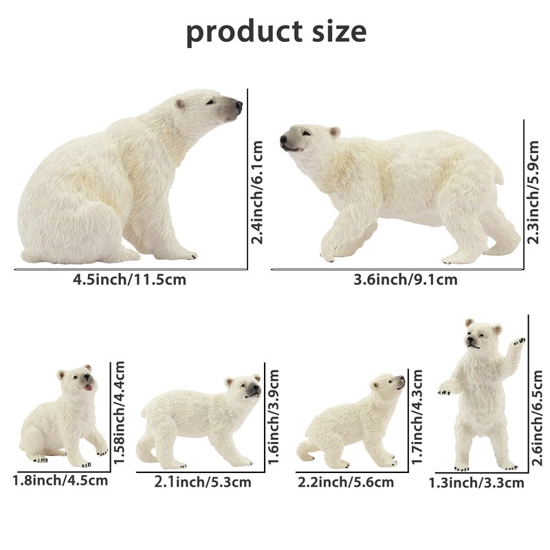 • POLAR BEAR FIGURINES FAMILY GATHERING: TOYMANY 6PCS Polar Bear Family Playset includes 2pcs polar bear toys and 4pcs polar bear figurine cub.