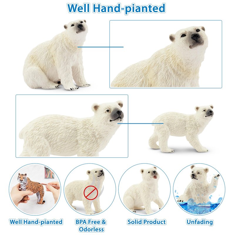 • SAFETY MATERIAL :TOYMANY polar bear toy figure made by high quality durable PVC material;All by safety meterials for kids, all animal figures are solid. TOYMANY aims to produce more realistic animal figurines and provide customers with the better quality.