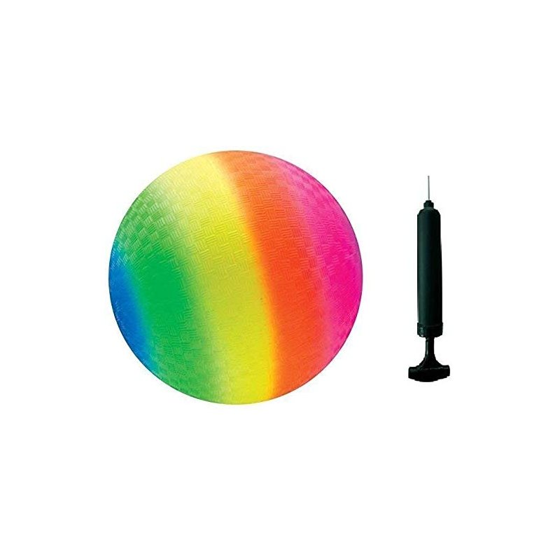 Toys+ 8.5 Inch Colorful Playground Ball + Pump (Rainbow)