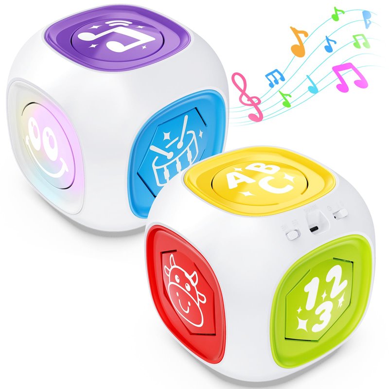 - Multi-Functional Musical Interactive Toys with Lighting: This toddler toys interactive cube invites babies to press buttons and learn the 26 letters, discover numbers 1-10, and enjoy 13 animal sounds. The music cube toys also include musical instruments and 10 different songs, perfect for early childhood development, also a good choice for one year old girl boy birthday gifts and baby girl boy gifts.